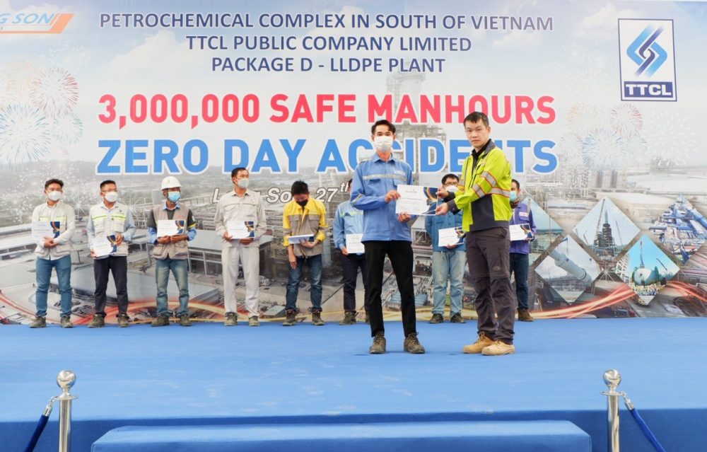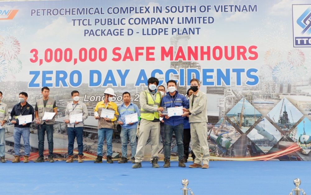 According to Mr. Unchalee Mulalee, Pre-Commissioning Manager, these accomplishments are obviously resulted from excellent commitment and performance of all employees to the existing HSE Policy of Long Son Petrochemical Project (LSP).
