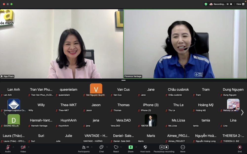 On the afternoon of August 26, after months of being imposed social distancing at different levels, from limit 20 people in office to 100% stay home, not allowed to go out even for food or medicine, many members of Vantage logistics who joined the company’s very first social distancing practice, already have been working from home, far from colleagues, desks, office for 3 months, the Vantage family has an online gathering, to share and update what happening, and firming that we will all overcome difficulties together. This is the very first big online gathering with more than 170 members from north to south. This is not a formal company meeting, it’s more about a chit chat among members of a big family, to encourage each other, to share how to keep good health both physically and mentally, and even accept bad luck with calm and good control. Vantage family has prepared to assist all family members at highest possible level: – To invite a specialist doctor to assist for all health concerns, created a Zalo group for doctor and all Vantage members so that they can promptly consult and support health care during the epidemic season. – Sent a backup medicine bag to all employees, including prescription support drugs and the doctor’s instructions to support treatment in case someone get Covid. – Establish a quick response team to support F0 cases during treatment and recovery – Have some oxygen concentrators ready in case of an emergency – Guaranteed income for all employees All the family members feel safe and confident to know that no one is alone in this tough trip, and the company, colleagues and people around are accompanying, caring, helping, to be strong to overcome this pandemic together....