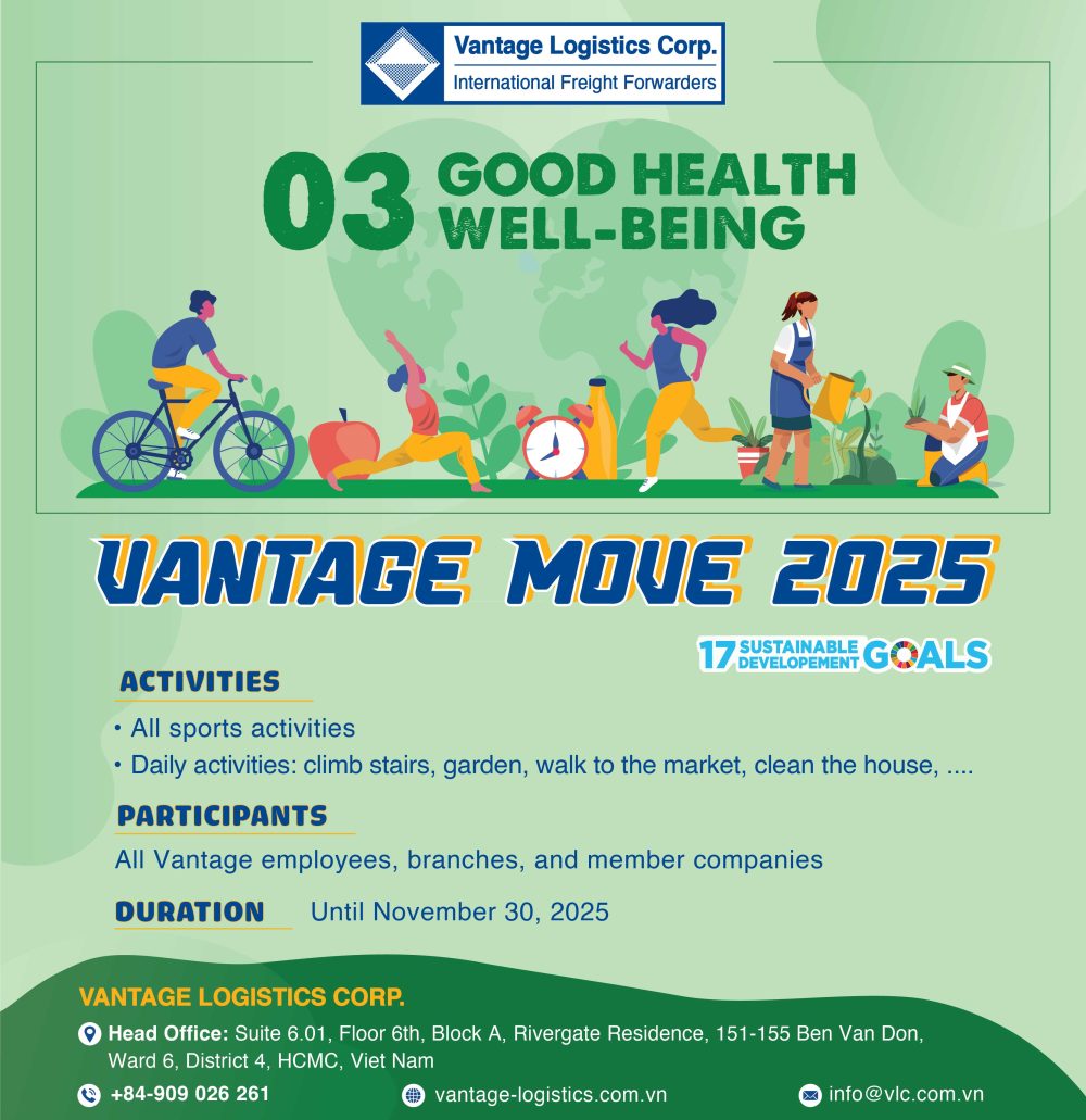 Vantage Move 2025 – Moving Together with Vantage in 2025 program as part of its commitment to Sustainable Development Goal 3 (Good Health and Well-Being). This initiative is one of Vantage Logistics’ key activities aimed at strengthening employee connections and enhancing team spirit. Vantage Logistics has officially launched the Vantage Move 2025 – Moving Together with Vantage in 2025 program as part of its commitment to Sustainable Development Goal 3 (Good Health and Well-Being). The program is designed to encourage employees to engage in physical activities, improve their health, and create a positive work environment. As a leading transportation and logistics enterprise, Vantage Logistics places great emphasis on its people. With the philosophy of fostering a healthy workplace, the company focuses not only on performance but also on employee well-being. The Vantage Move 2025 program not only promotes an active lifestyle but also raises awareness of healthy living among employees. In addition to encouraging individual participation in daily physical activities, the program fosters team engagement by recognizing and rewarding departments and branches with the highest participation rates. This initiative is one of Vantage Logistics’ key activities aimed at strengthening employee connections and enhancing team spirit. Vantage Logistics remains committed to developing sustainability-driven initiatives, placing people at the center, and creating long-term value for the community, customers, and partners....