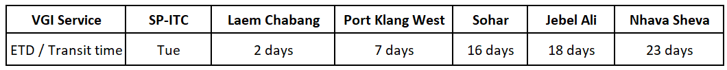We’d like to announce the new direct service from Ho Chi Minh (SP-ITC) to India & Middile East from 18 Jan 2022 as below: