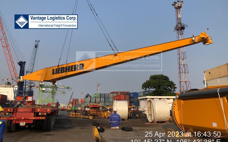 [Vantage Logistics] In charge of handling equipment at Tan Thuan port, and transporting LIEBHERR FTS 280 – 45T AT 32M LITRONIC cranes equipment from Tan Thuan port, Ho Chi Minh City to Saigon Shipmarin SSMI factory, Viet Nam