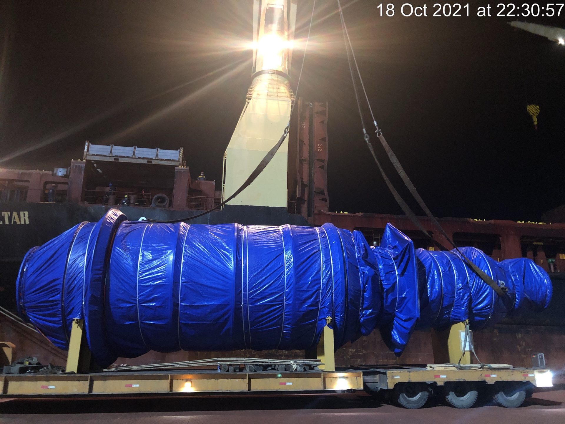 The shipment includes 14 packages of oversized mechanical equipment with a total gross weight of 34,256 tons, of which the largest package has dimensions up to 14.45m x 4.32m x 4.38.