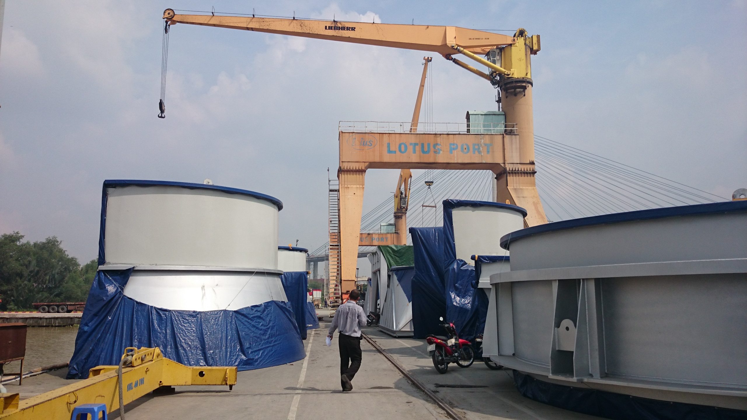 We picked up from exw, delivered to jetty, load onto barge, deliver from jetty to HCMC port the shipment of 54 OOG packages and 6×40’OT container. Biggest piece 6.8mLx6.2mWx4.4mHx16tons. Highest package 6.2m.