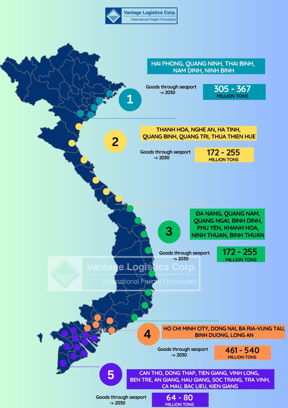 Priority is given to the development of international gateway ports, Lach Huyen (Hai Phong), Cai Mep (Ba Ria – Vung Tau). Studying appropriate mechanisms and policies to gradually develop an international transshipment port at Van Phong (Khanh Hoa) to exploit the potential of natural conditions and geographical location. Planning on development orientation of Tran De port (Soc Trang) serving the Mekong Delta so that investment can be deployed when conditions are met; large-scale seaports serving socio-economic development of the whole country or inter-region; large-scale ports serving economic zones and industrial zones; ports in island districts to serve socio-economic development in association with national defense and security and sovereignty over sea and islands.