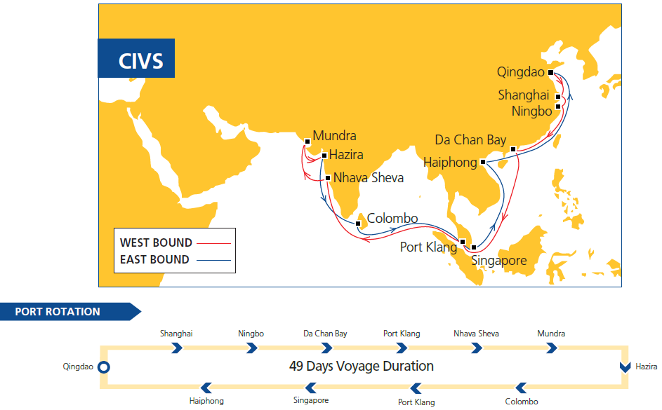ESL offers the CIV service that links fast-growing markets in India, China and Southeast Asia, which is a premier service focusing on customers’ needs of schedule reliability, stability and efficiency.