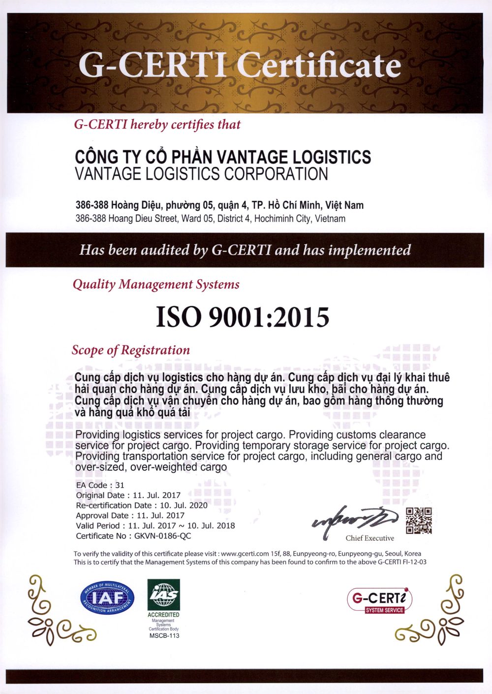 Vantage Logistics is proud to announce that we are now ISO 9001:2015 certified.
