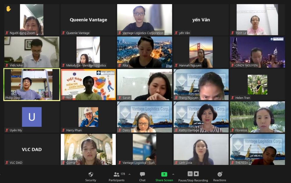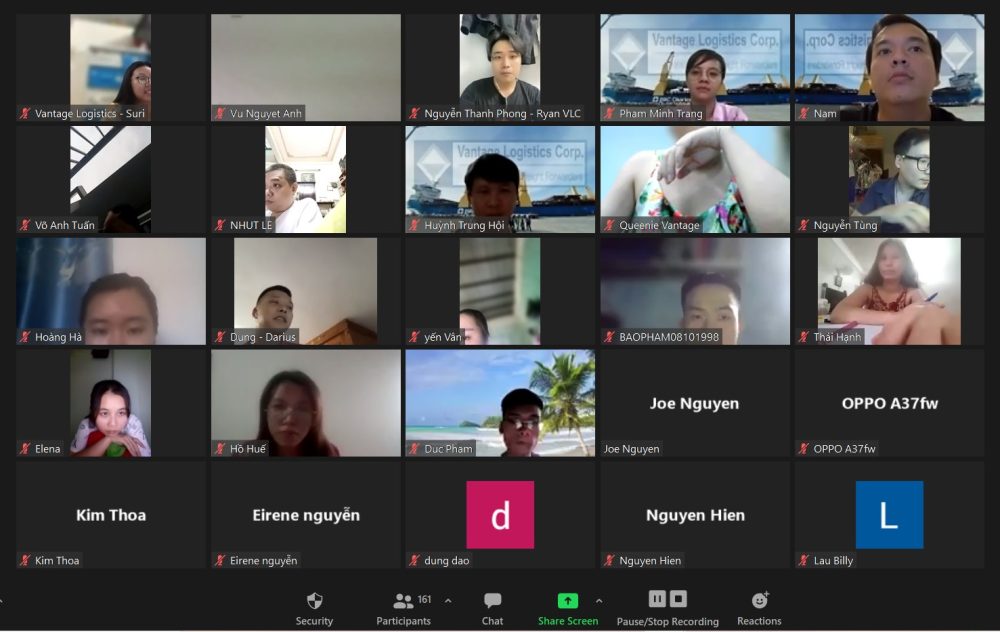 On the afternoon of August 26, after months of being imposed social distancing at different levels, from limit 20 people in office to 100% stay home, not allowed to go out even for food or medicine, many members of Vantage logistics who joined the company’s very first social distancing practice, already have been working from home, far from colleagues, desks, office for 3 months, the Vantage family has an online gathering, to share and update what happening, and firming that we will all overcome difficulties together.