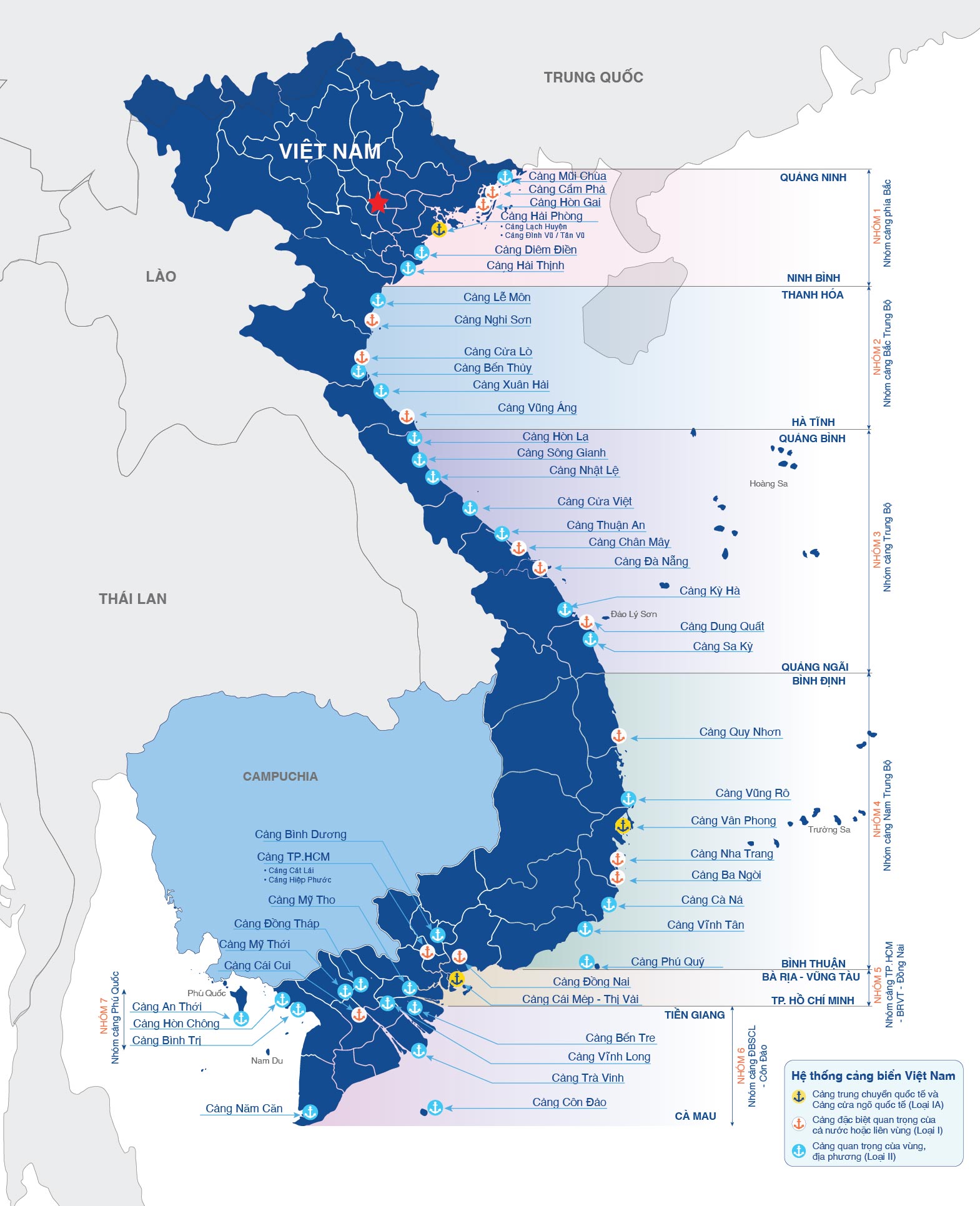 Bản đồ danh mục và phân loại cảng biển Việt Nam sau điều chỉnh địa giới hành chính