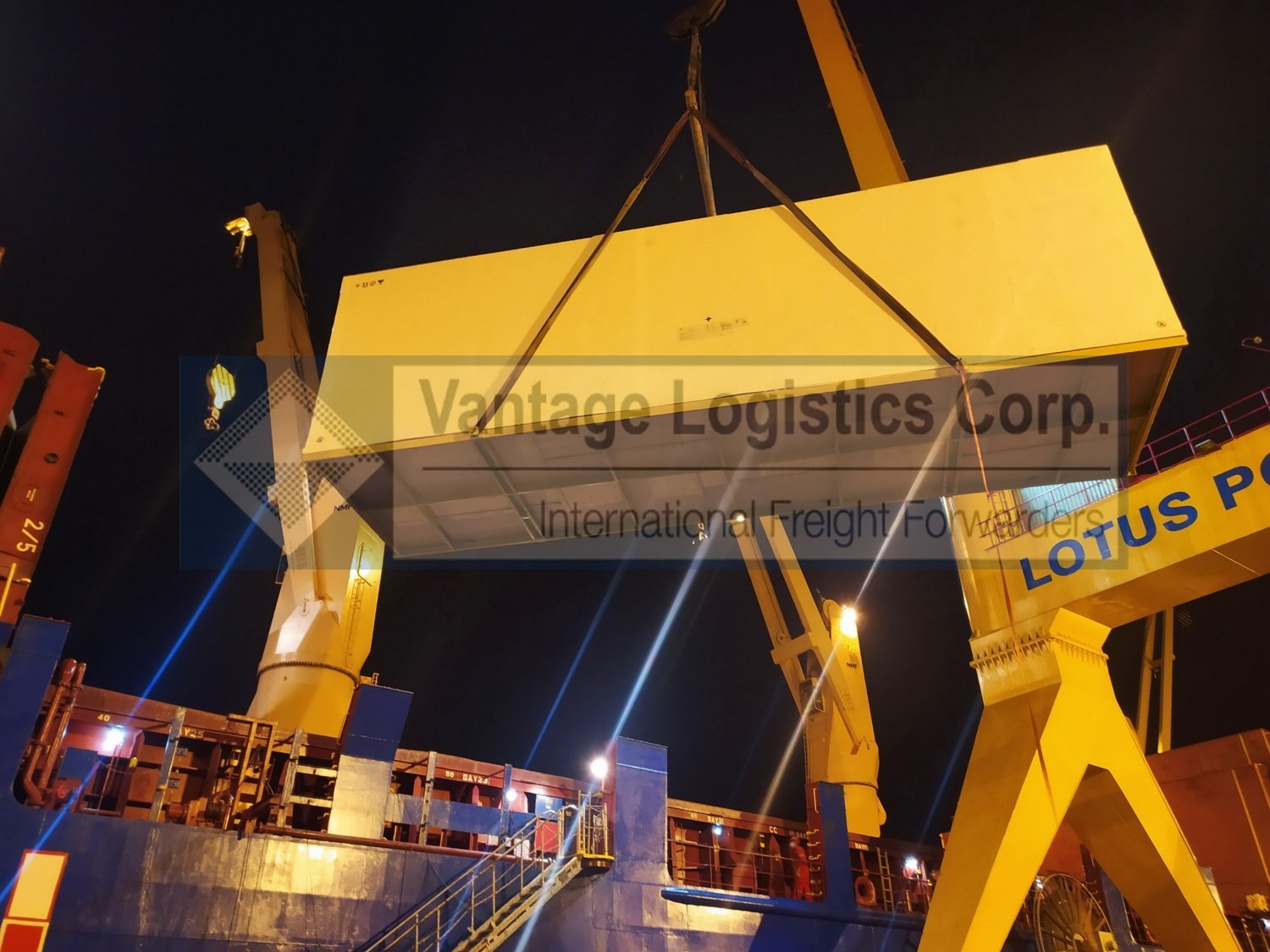 此次货运的特殊之处在于执行时间极其紧迫。从代理商提供信息到最后一件货物在出口港装船,Vantage的项目团队只有72小时的时间。我们必须完成所有环节,包括提供报价、安排车辆和装卸设备(包括16辆卡车、1艘驳船和1台160吨级的货物起重机),同时还要申请超限运输许可证、进行道路勘测以制定运输方案;尤其重要的是,要在6小时内调配8辆超限卡车。