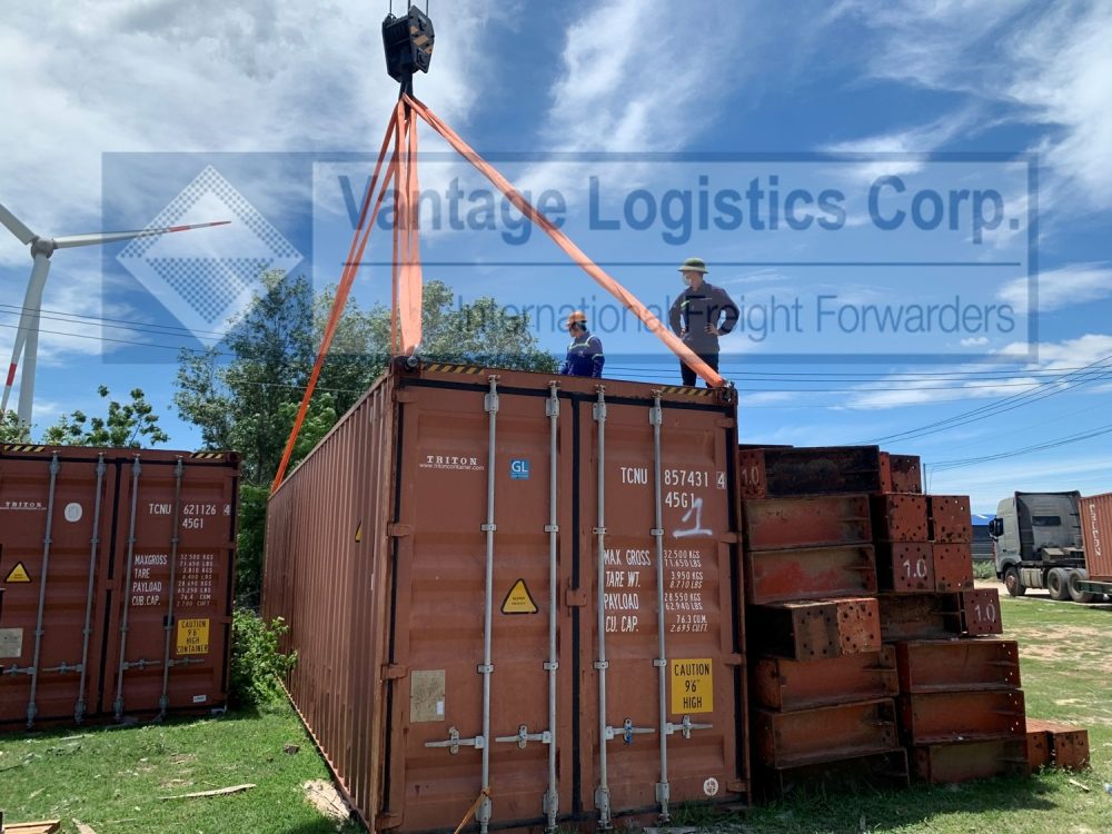 Vantage公司的业务范围:包装、捆扎、将集装箱从工地装载到卡车上、CSC认证集装箱、从工地到TCIT港口的卡车运输、从越南到德国的海运。